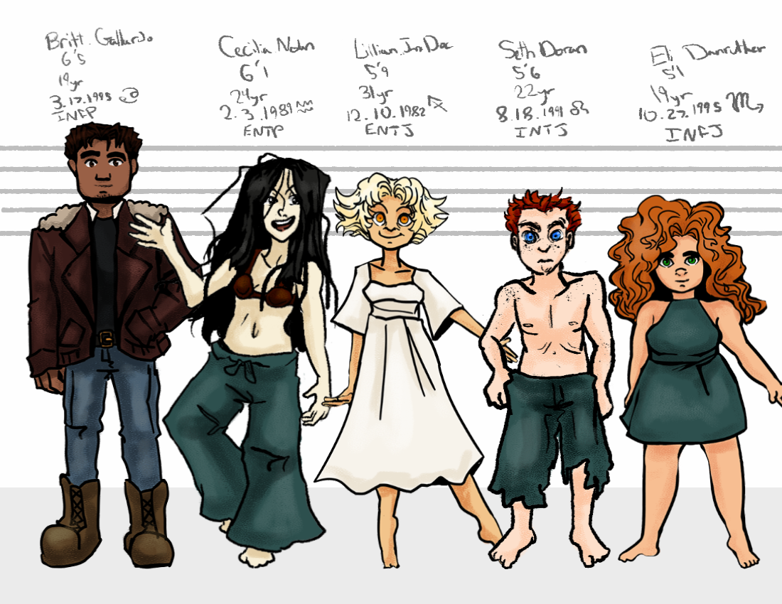 This is was a very fun and useful project to put together. All of them were in need of character sheets and notes as well as an official height chart. This allows me to reference both appearances and pick colors more consistently across any project I want to do with these fools.