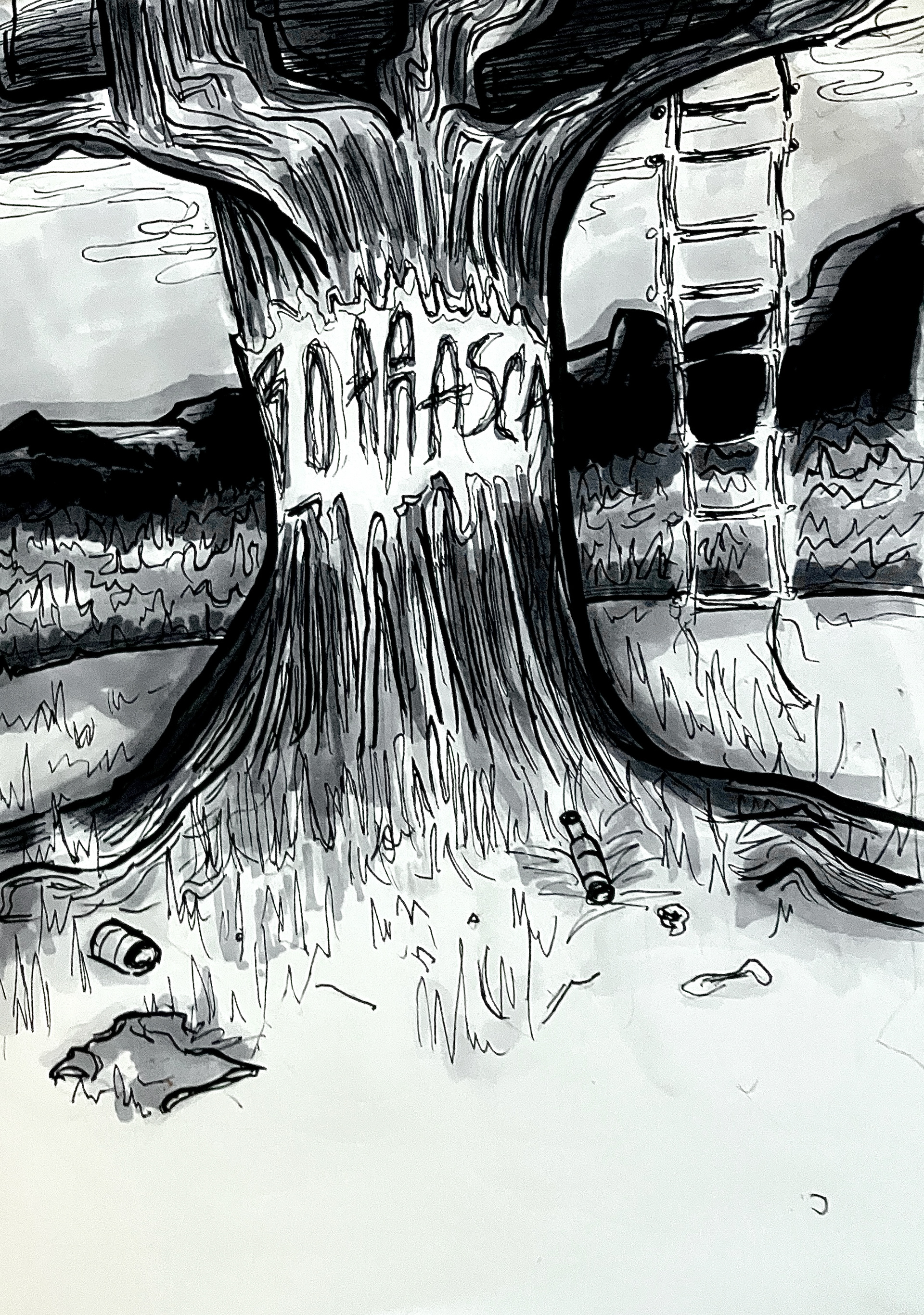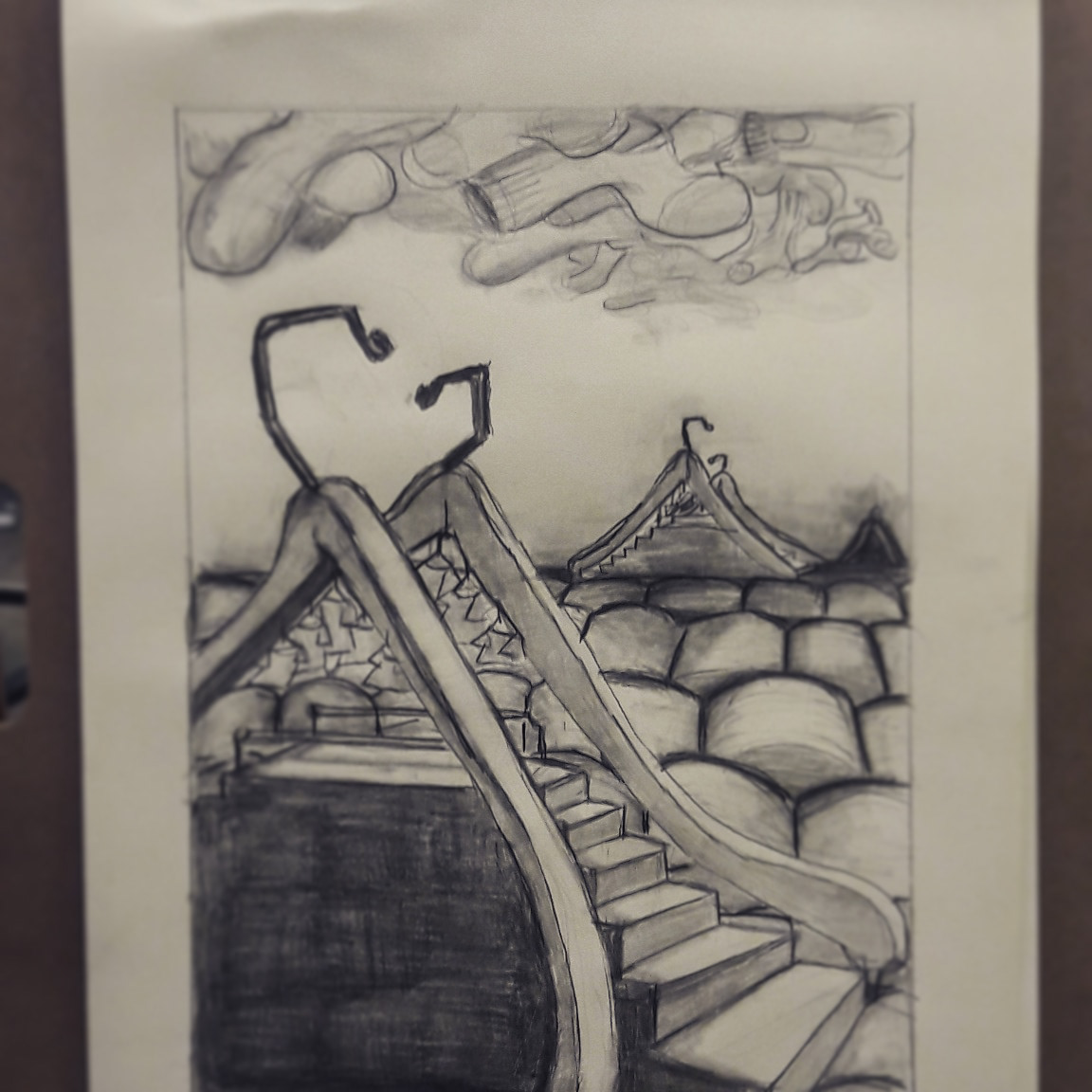 Charcoal drawing had to reimagine an actual location.