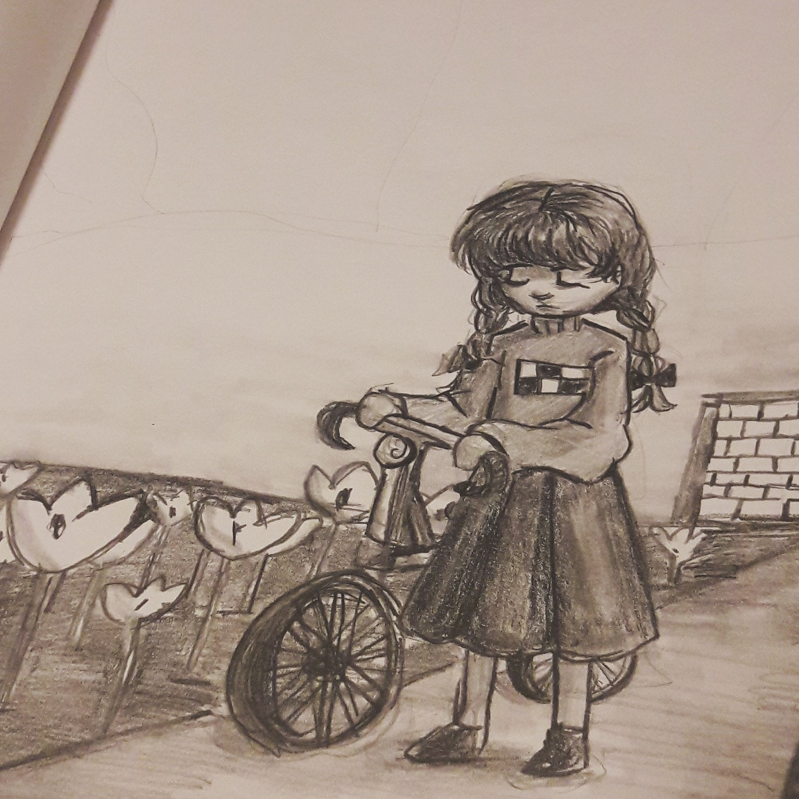 I wanted to have fun using my blending sticks with graphite. Happened to draw Madotsuki from Yume Nikki.