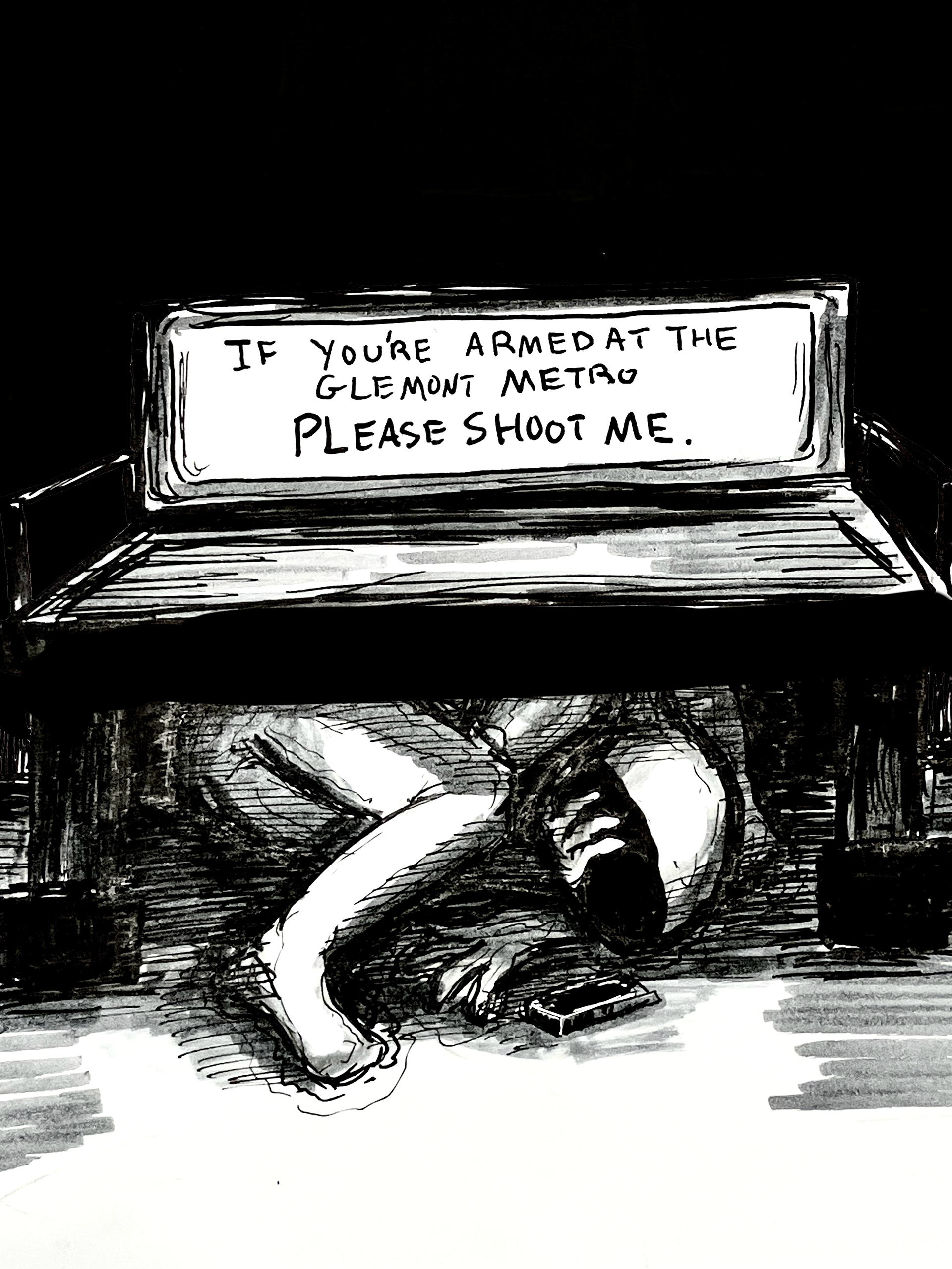 I was in a very difficult spot for life drawing, this is a tough angle to draw people. Yet I think I pulled it off, the mask does make it a bit more confusing. I appreciate how smooth his head turned out.